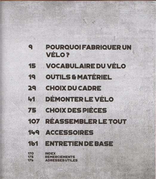 Vous avez toujours rêvé d’un manuel pour réparer voir construire votre vélo ? Ce guide en images est fait pour vous. Jenni GWIAZDOWSKI, l’auteure, vous invite photos à l’appui à découvrir les éléments d’une bicyclette, à les démonter et les remonter, même faire votre propre vélo avec vos éléments choisis pour une personnalisation au-delà de la peinture du cadre. Pleins de bons conseils pour maintenir votre monture en forme !